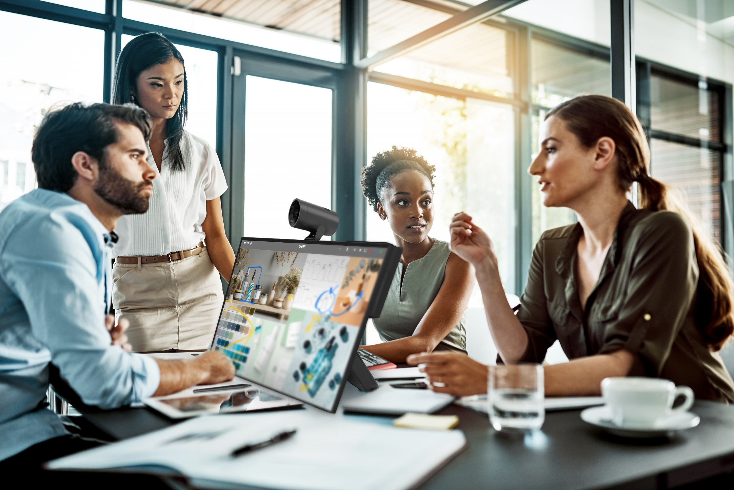 Präsentieren, brainstormen, Ideen festhalten – das SMART Board Mini verbindet Teams interaktiv und unkompliziert; es fördert spontane Zusammenarbeit und klare Kommunikation.